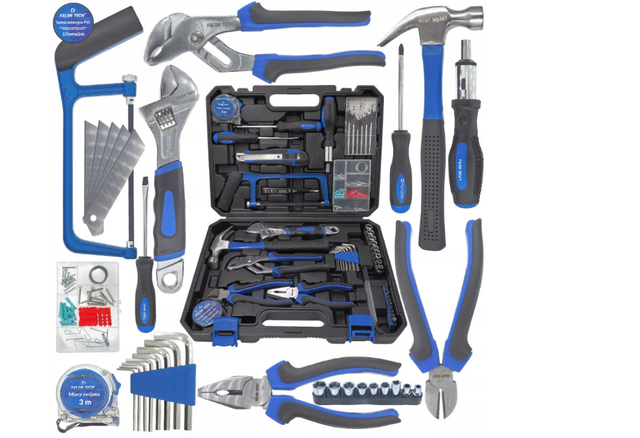 Набір містить 100 ручних інструментів, необхідних для виконання найпоширеніших робіт. Зручна та міцна валіза забезпечує простоту підтримки порядку та зручність транспортування комплекту.