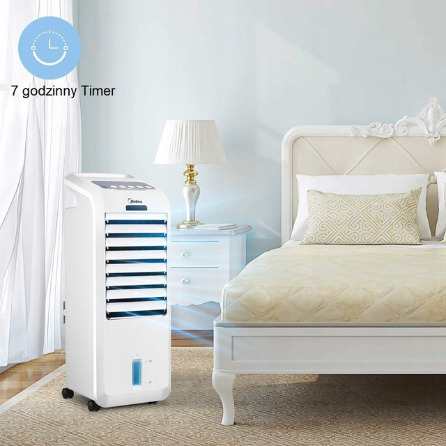 Безпечний і простий у чищенні: насос повітряного охолоджувача вимикається автоматично, коли резервуар для води порожній або кришка знята. Закрита передня решітка запобігає потраплянню пилу та бруду. Знімні фільтри також полегшують очищення. 5-літровий резервуар для води можна легко зняти для очищення.